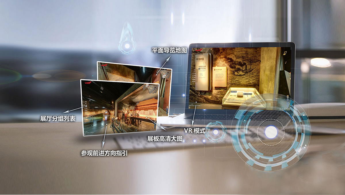 平面导览地图功能;展厅分组列表功能;展板高清大图功能;参观方向指引功能;当前所在位置标示功能;导览缩略图功能;导览缩略图开关功能;博物馆简介功能;地图开关功能;VR模式功能;分享功能;点赞功能。