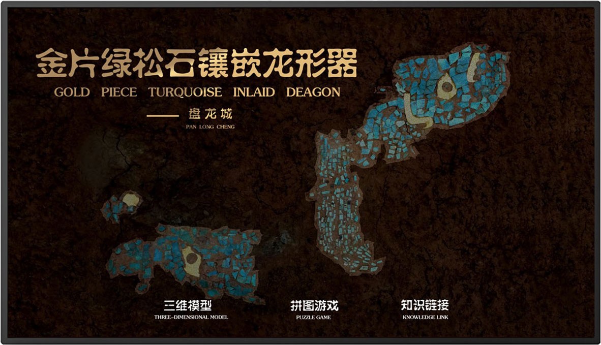 交付单位为武汉盘龙城遗址博物院,“金片绿松石龙形器”这件展品的延伸制作,内容有器物的等比三维模型、文物复原拼图、相关知识链接三个部分。